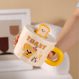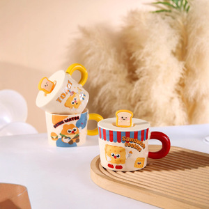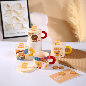 可爱卡通面包马克杯带盖勺家用陶瓷杯子女生高颜值办水杯生日礼物