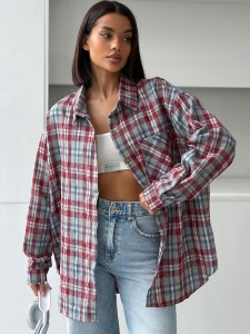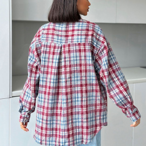 秋の新作女性用ルーズレトロチェック柄長袖シャツ、デザインと気質、カジュアル2025ヨーロッパとアメリカの国境を越えた通勤