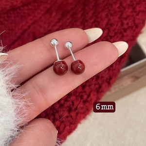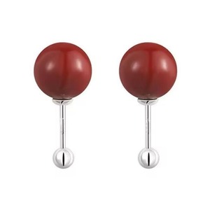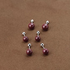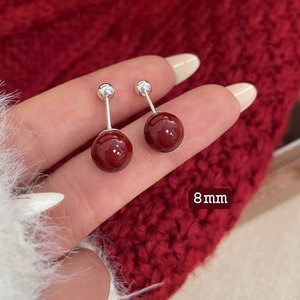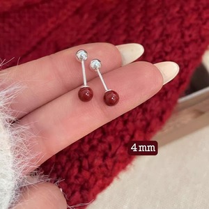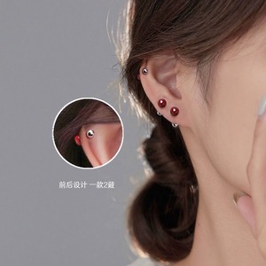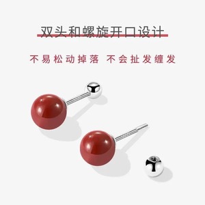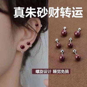 S925银针暗红朱砂耳钉气质高级感螺丝扣耳环女新款潮流免摘耳骨钉
