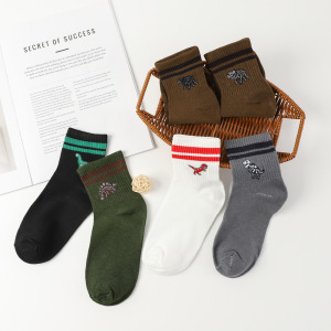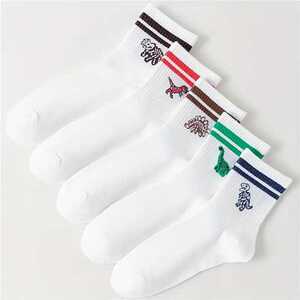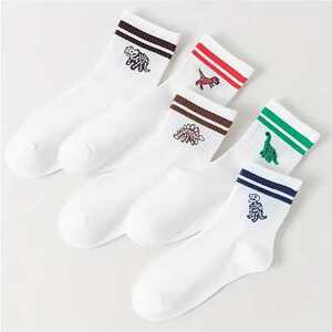 卡通恐龙袜子男春秋季薄款涤棉吸汗透气男士中筒袜诸暨袜子批发