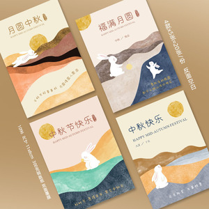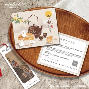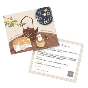 中秋贺卡印刷新中式插画中秋祝福卡片可设计月饼蛋黄酥食用说明卡