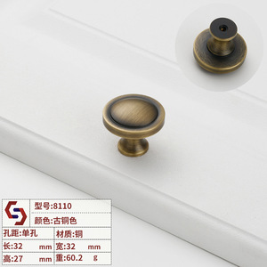 工場直販真鍮ハンドルキャビネットドアフレンチワードローブキャビネットラウンドハンドル引き出しゴールデン単穴小さなハンドル