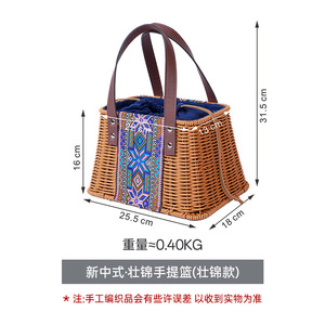新しい中国風のチャンブロパターンハンドヘルドバスケット模造籐織りスナックフルーツピクニック撮影収納装飾フラワーバスケット
