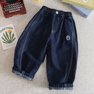 子供カジュアルパンツ 2025 春と秋の新製品男の子と女の子日本製ルーズパンツ男の子ベビーシンプルなジーンズ