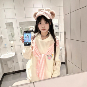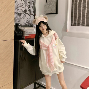 初秋慵懒风甜美蝴蝶结绑带连帽卫衣女情侣新款设计感宽松外套上衣