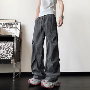 美式褶皱弯刀伞兵裤子男夏季潮牌宽松垂坠感阔腿休闲工装长裤跨境