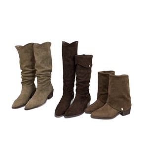 多穿复古西部牛仔靴女v口尖头瘦瘦靴堆堆长靴粗跟高筒骑士靴