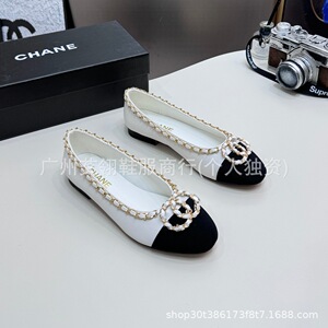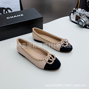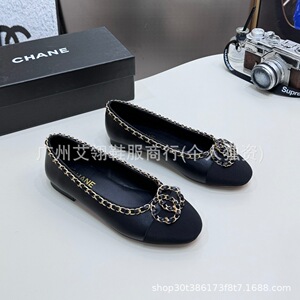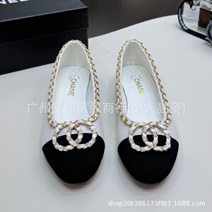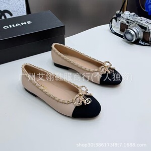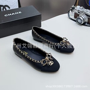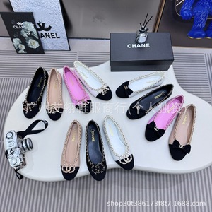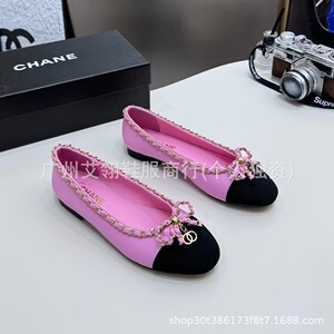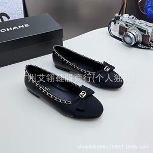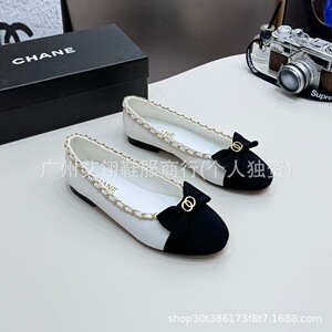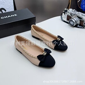 2025春秋新款小香风链条蝴蝶结单鞋女跨境平底懒人一脚蹬芭蕾舞鞋