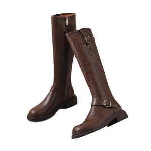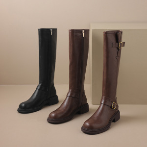 废土风女2025圆头不过膝骑士靴女英伦风显瘦秋冬百搭粗中跟长筒靴