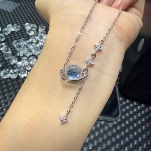星河宇宙海蓝宝项链气质轻奢小众设计锁骨链高级感吊坠锁骨链新款