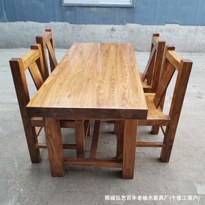 老榆木家具实木餐桌椅组合长条餐凳新中式餐厅成套餐桌椅家用餐桌