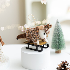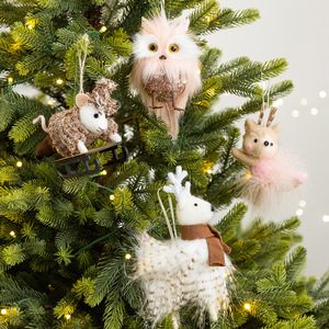 新款圣诞装饰毛毡麋鹿桌面摆件毛绒猫头鹰圣诞树场景氛围布置挂件