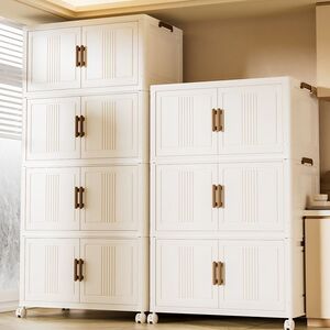 アップグレードされた耐久性のある [両開き磁気吸引 + ユニバーサルホイール] 2 層キャビネット