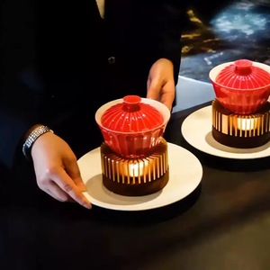新中式陶瓷莲花燕窝盅高级感佛跳墙位上汤盅高端会所蜡烛加热餐具