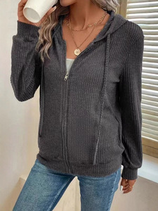 跨境欧美2025新款时尚针织开衫拉链外套带帽修身显瘦女式夹克衫