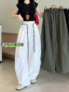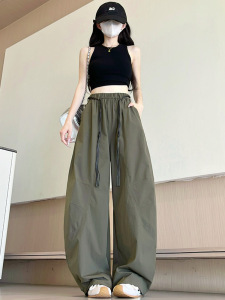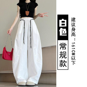 速乾性シミターパンツ女性の夏薄い 2025 新しいハイウエスト多用途痩身カジュアルパンツ怠惰なルーズワイドレッグパンツ