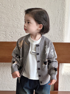 男の子子供服ニット子犬漫画カーディガン Tシャツジーンズ 3 点セット幼児春と秋のスーツ外出服