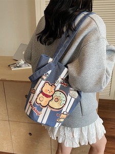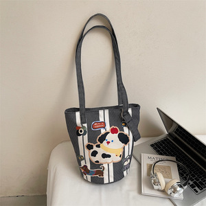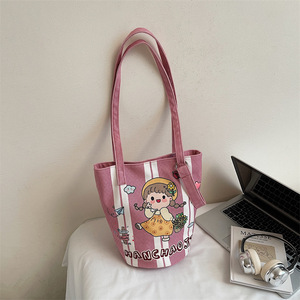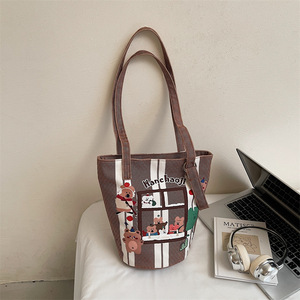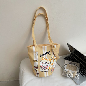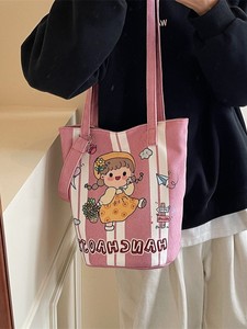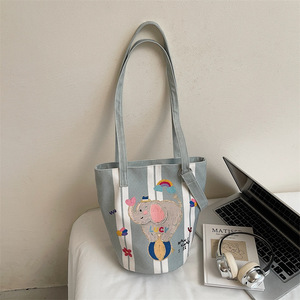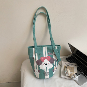 卡通印花可爱休闲水桶包包2025新款质感彩色帆布包百搭时尚单肩包
