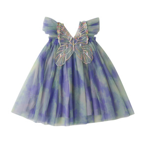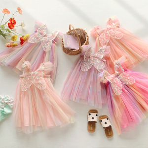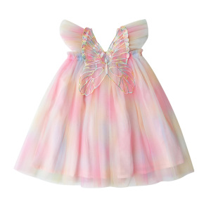 クロスボーダー Amazon レインボーウィングメッシュガールズドレス 2025 夏フライングスリーブベビープリンセスドレスチュチュスカート