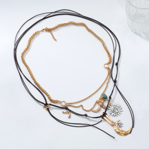 ZA ヨーロッパとアメリカの誇張されたビッグブランドムーンサン手織り多層ネックレスペンダントロングサマービーチクロスボーダーサプライ