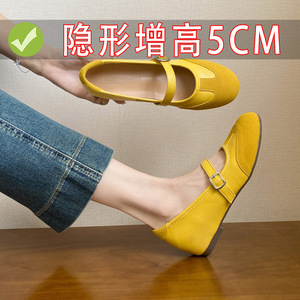 2025春秋新款韩版百搭一字扣带内增高法式复古圆头玛丽珍鞋单鞋女