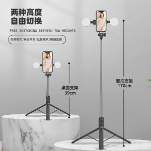 多機能 Bluetooth 自撮り棒、旅行用ポータブル携帯電話自撮りアーティファクト、格納式ライブブロードキャストフロアスタンド三脚