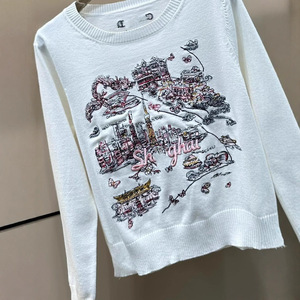 2025年早秋新款迪家字母重工万绣长袖圆领套头宽松百搭女毛衣
