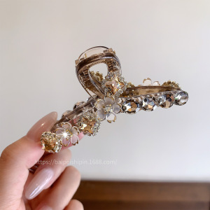 2025年新款水钻花朵爆闪轻奢气质百搭满钻高级感法式鲨鱼夹后脑勺