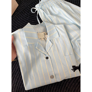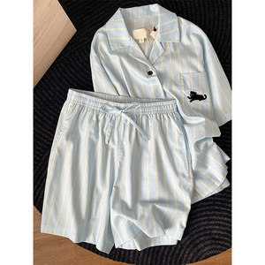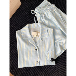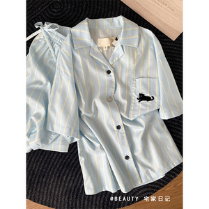 【现货】韩版条纹短袖短裤睡衣女款2025新款夏季宽松家居服套装女