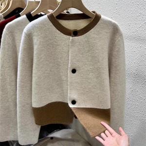 デザインニッチなコントラストカラーのソフトワックスカシミアセーターカーディガンレディース秋冬ラウンドネックレイジースタイルニットジャケットトップ
