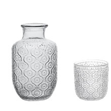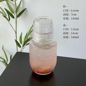 ins风高颜值冷水壶复古刻花海棠花玻璃茶壶一壶一杯果汁玻璃杯