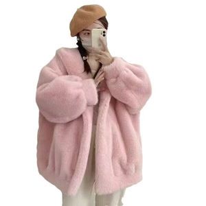 环保毛白熊皮草外套毛毛2025新款中长款秋冬宽松慵懒加厚水貂大衣
