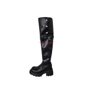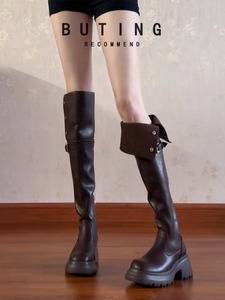 厚底过膝长靴女2025年秋冬两穿真皮复古粗跟骑士靴美拉德长筒靴子