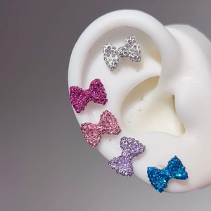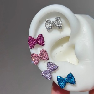 芭蕾蝴蝶结耳骨钉彩色多巴胺蝴蝶结陶泥耳环气质甜美拧螺丝耳钉