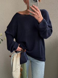 女性の新しいファッションエレガントなプルオーバーニットセーター無地ルーズラウンドネック甘いニットセーター女性