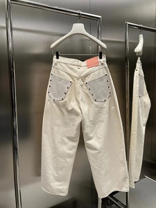 25ss南油高定/买手店小众 北欧AC泼墨扎染做旧真皮铆钉口袋牛仔裤