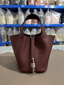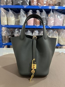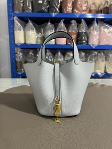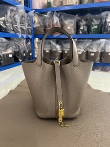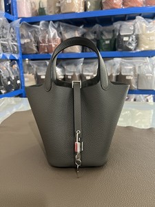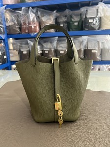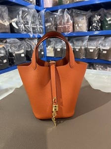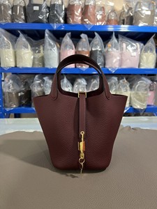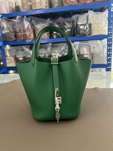hホームスチールハードウェア手縫いワックス糸野菜かご18/22cm。オリジナルTCレザーバケットバッグ本革レディースハンドバッグ。