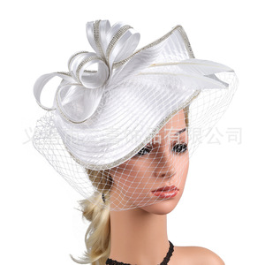 亚马逊欧美创意网纱色丁布礼帽舞台写真头饰新娘发饰大头花