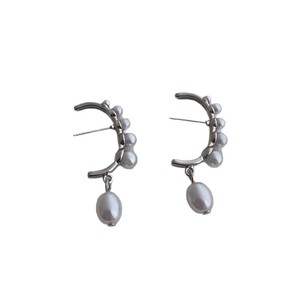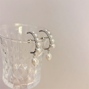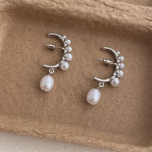 欧美时髦感小众设计气质珍珠耳环法式弧形通勤优雅耳坠耳钉耳饰品