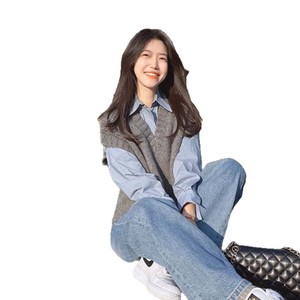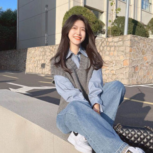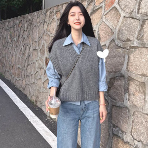 秋と冬の女性のためのグレーのレイジースタイルニットベストカレッジスタイルレトロVネックショートレイヤード多用途ノースリーブベスト