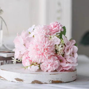 (多支买更划算)7叉把束玫瑰绣球粉色