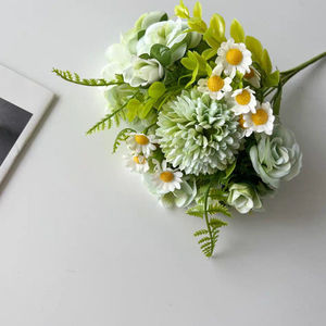 (多支买更划算)7叉把束玫瑰绣球黄色