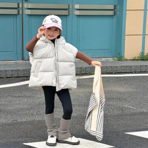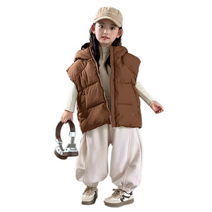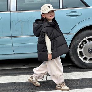 新款女童棉服马甲秋冬洋气中大童儿童连帽夹棉加厚背心外穿坎肩韩
