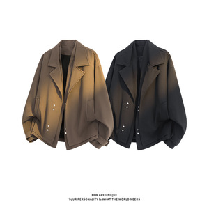 2025春季新款韩版宽松痞帅外套假两件夹克男宽松休闲感时尚外套批