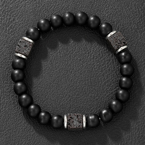 ライブ販売ホットブラックオブシディアンブレスレットメンズビーズスクエア火山石ビーズカップルブレスレット卸売アマゾンホットスタイル