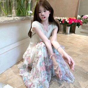 2025夏季新款甜美风收腰蕾丝拼接短袖T恤网纱半身裙时尚套装女潮