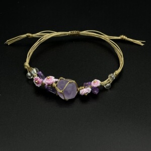 跨境可调节波西米亚macrame原石水晶编织手绳原创手链手工手绳