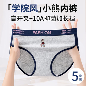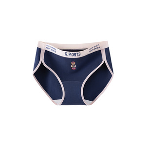 中腰小熊内裤女纯棉抑菌裆女士新款美式复古女生三角裤蓝色