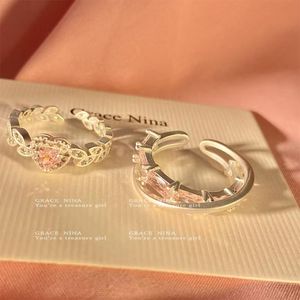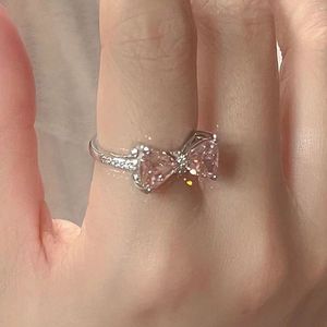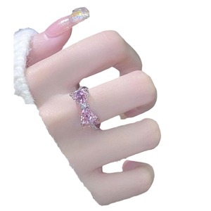 女性のファッショナブルな韓国の甘くて絶妙なピンクのフレンチリボンオープンリングニッチデザインガールフレンドリング