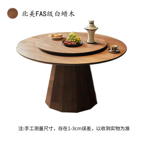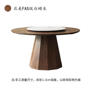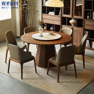 北美黑胡桃实木色圆形餐桌实木岩板现代简约家用别墅大圆餐桌转盘